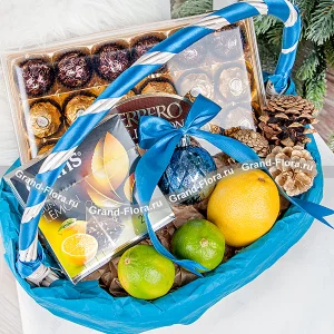 Новогоднее настроение - корзина с мандаринами и шоколадом