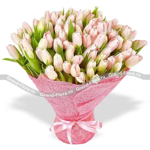 Для моей принцессы - букет из белых и розовых тюльпанов