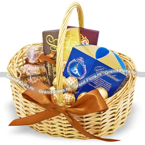 На чашечку кофе - подарочная корзина с цветами и сладостями