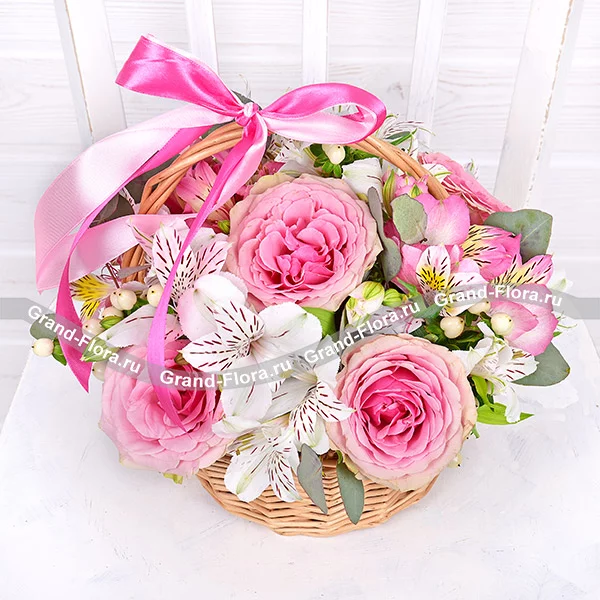Воздушно-невесомая,  притягательно-нежная и изумительно прекрасная цветочная композиция в корзинке, несомненно подарит радость, восторг и восхищение прекрасной получательнице!